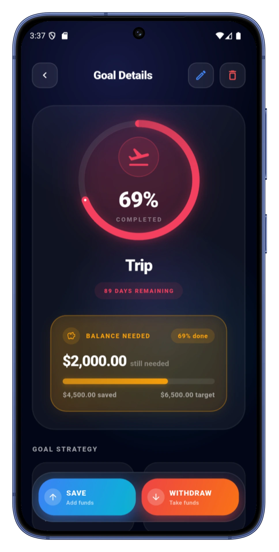 Set and monitor multiple savings goals simultaneously with visual progress tracking.